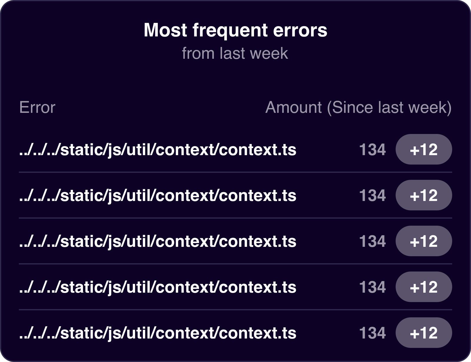 This section shows the top 5 errors ordered by their frequency. Ignored errors are excluded.