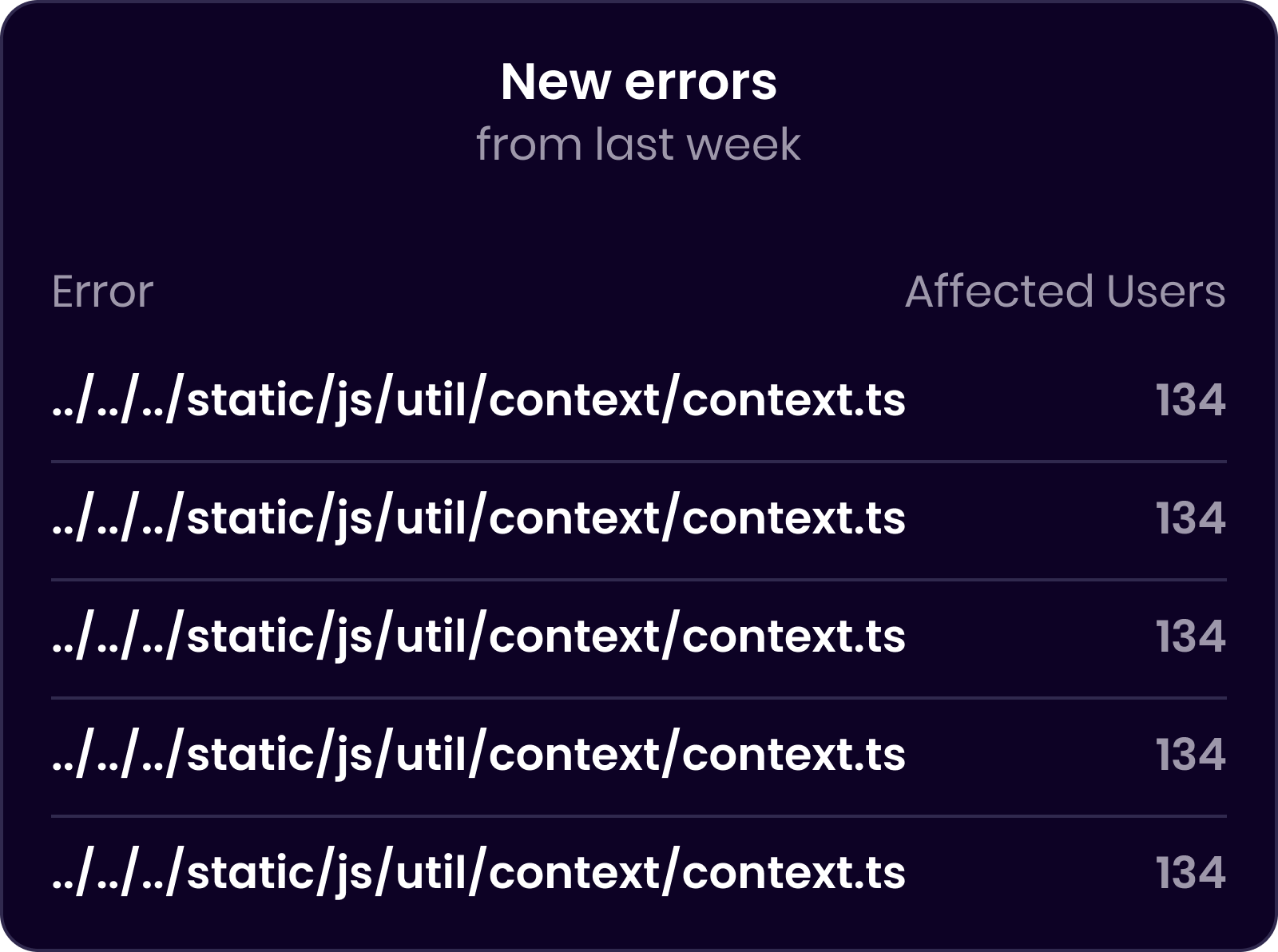 This section shows the top 5 errors originating in the last week, ordered by the count of unique affected users.